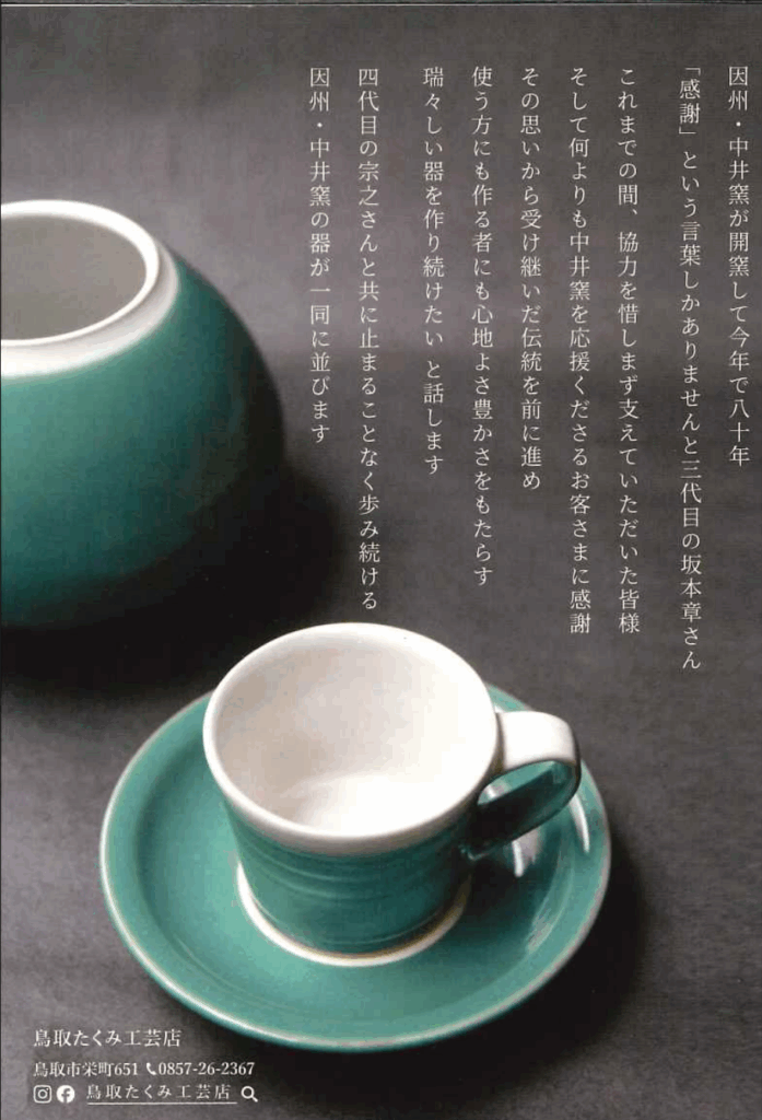ご存知のとおり、中井窯は民藝の人気の窯元で、今年5月には開窯80周年を迎えられました。