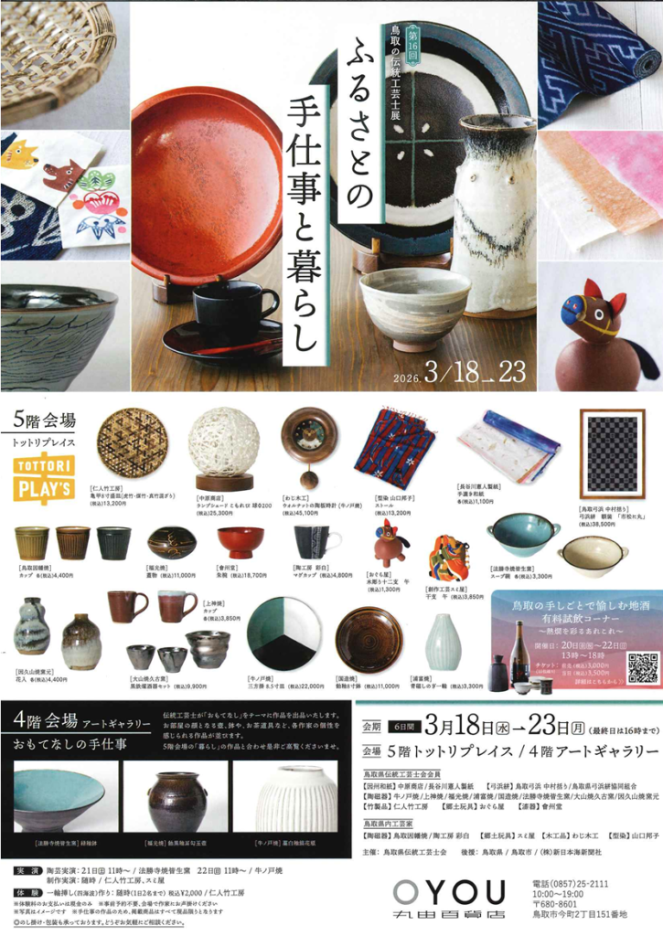 毎年この時期恒例の「鳥取の伝統工芸士展」が今年も鳥取駅前の丸由百貨店5階で開催されます。