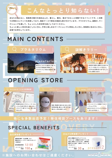 イベントに関するお問合せ:新鳥取駅前地区商店街振興組合 電話0857-23-5550(平日10:00~17:00)