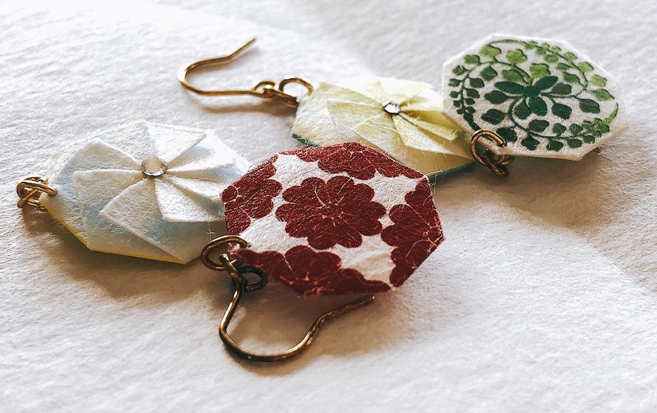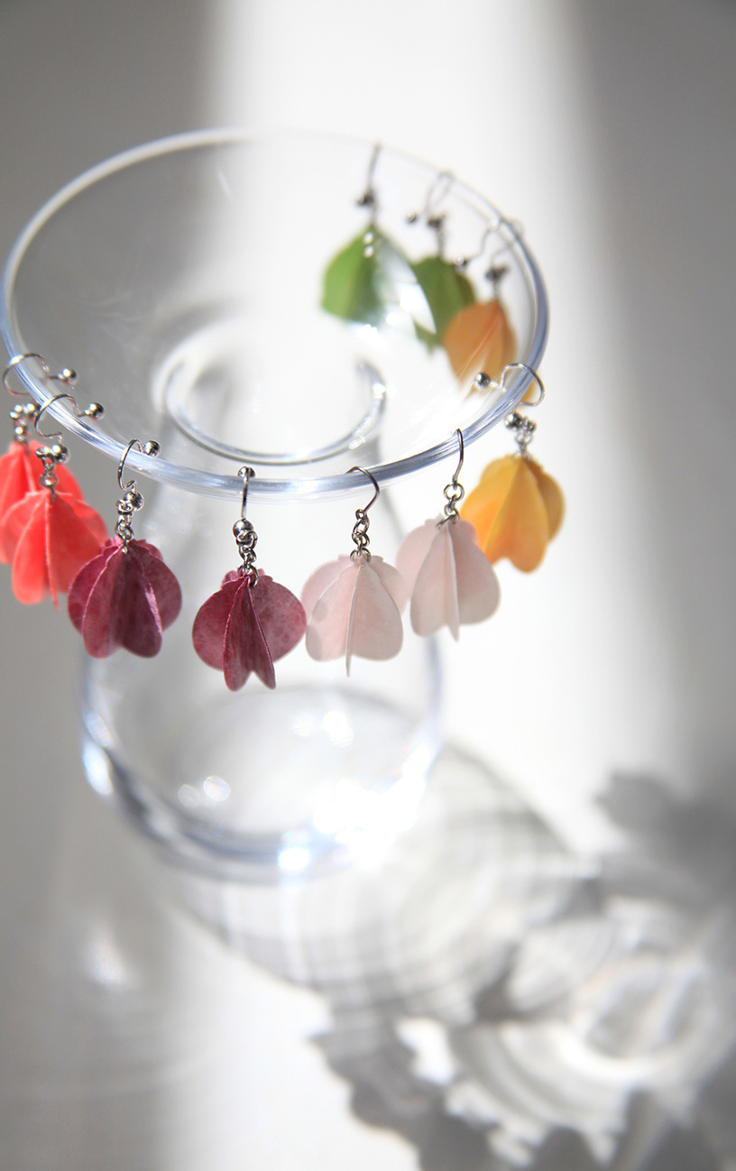 ”暮らしと伝統文化をひとつに” をコンセプトに活動しています。ひとつひとつ丁寧な人の手で作業を重ねることによって、繊細な色、質感、強靭な和紙だからできた、軽やかなアクセサリーです。お気に入りの香水をまとわせたり、ご自身で曲げたり、折ったりとアレンジのきく、アクセサリーとなっております。贈り物にもぴったりです。