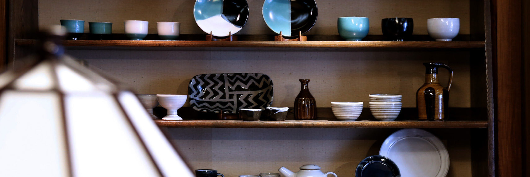 鳥取の新作民藝を牽引した吉田璋也は、職人とともに現代の生活に即応する新しい民藝品の生産に勤しみました。職人の技術の熟練のためには、継続して仕事を与える仕組みが必要と考え、出来た品物を買取り販売する場として、昭和七年(1932年)に「たくみ工芸店」を開店します。 それは在来の民藝品に見出された、健康な美、正しき美を新しい品物に宿らせ、将来へ引き継ぐ架け橋となりました。以来八十年以上にわたり、陶器、木工、染色、竹工、漆工、紙など、この地方の素材を用いて職人が作った新作民藝の品々を取扱っています。