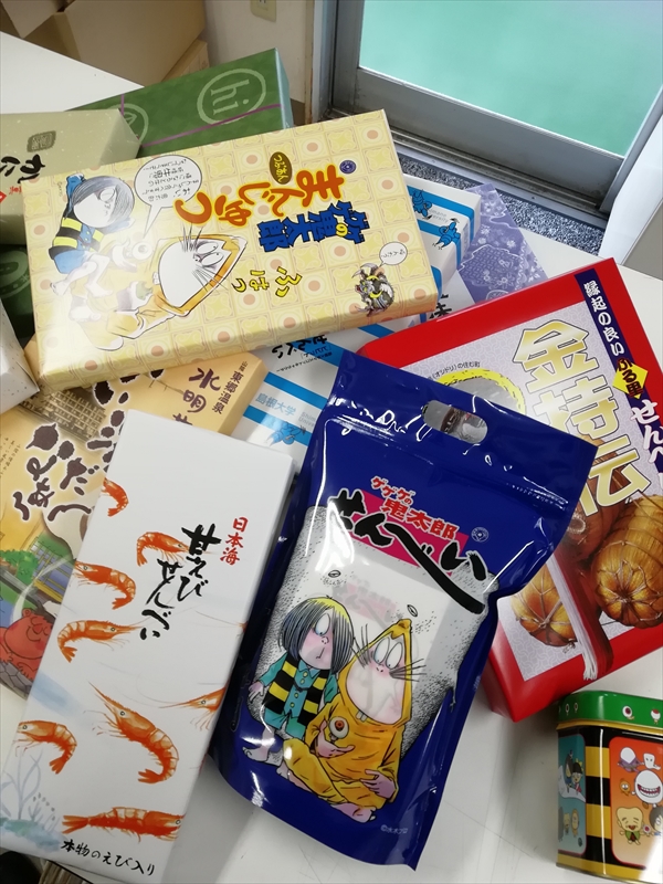 境港市で煎餅の製造・卸・販売をしている 企業です。主に「ゲゲゲの鬼太郎」関連のお菓子やグッズを販売しております。