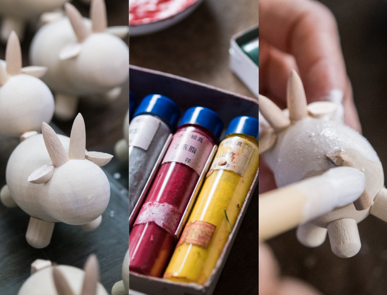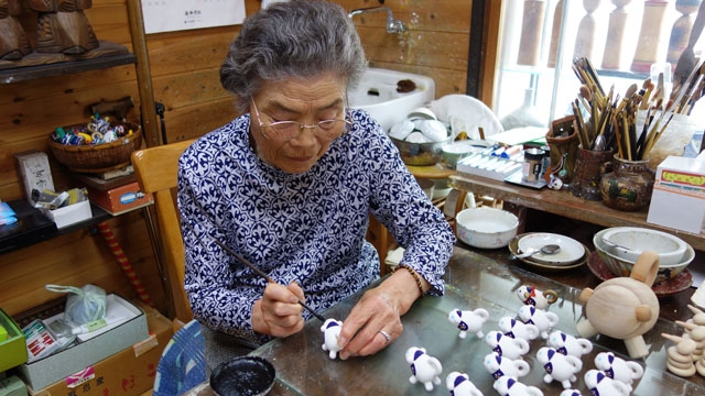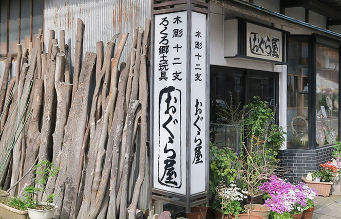 因幡地方最古の岩井温泉の温泉街の一角に「おぐら屋」はあります。約200年前に木地師(きじし)の小椋佐兵衛が挽物(ひきもの)を製作したのが始まりですが、その流れをくむ小椋家八代目により、従来の挽物に独創的なデザインと技術を加えて木彫人形十二支が作られました。全体を挽物細工で作り、泥絵具で彩色しています。| 所在地 | 鳥取県岩美郡岩美町岩井319 |