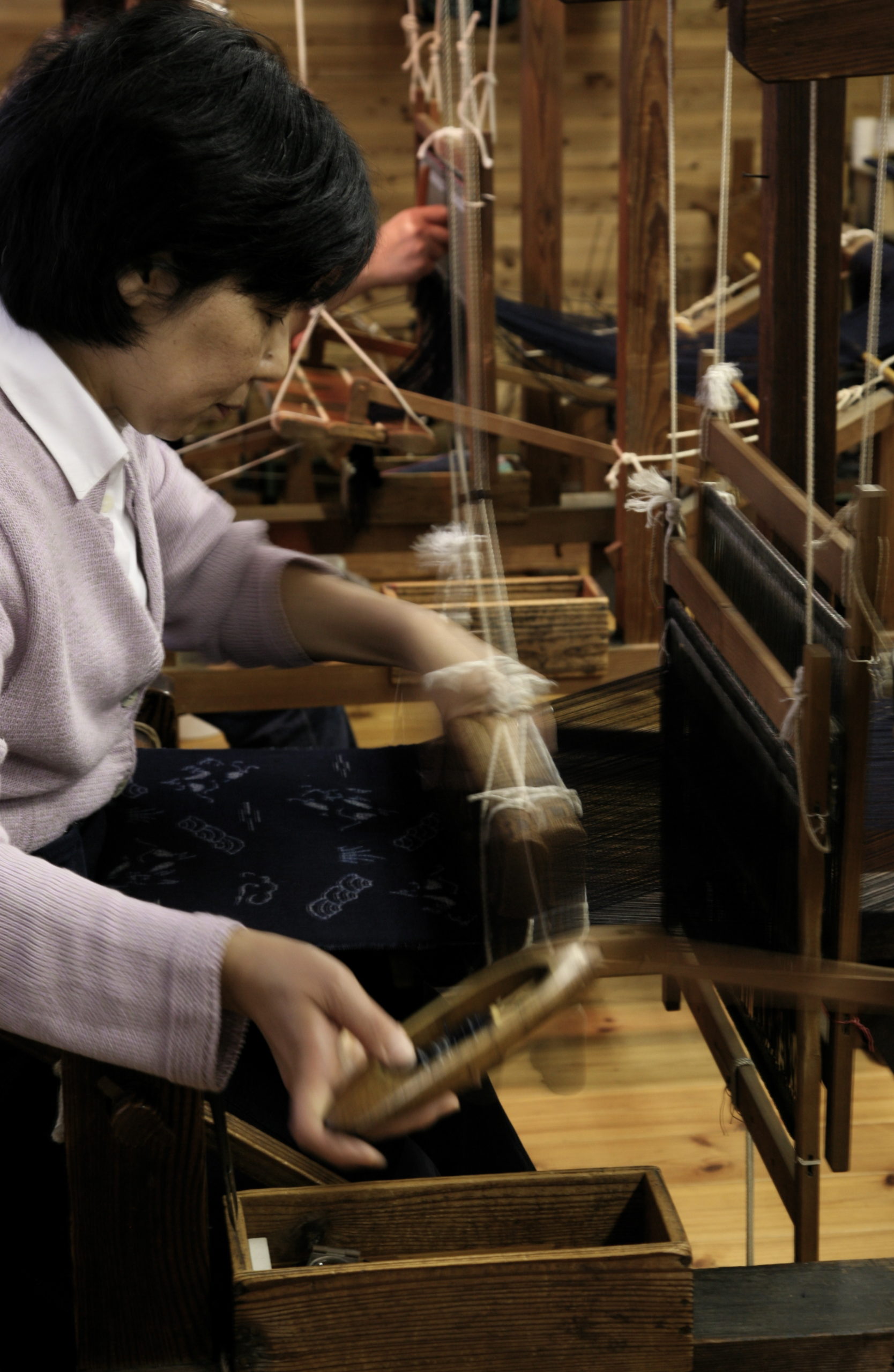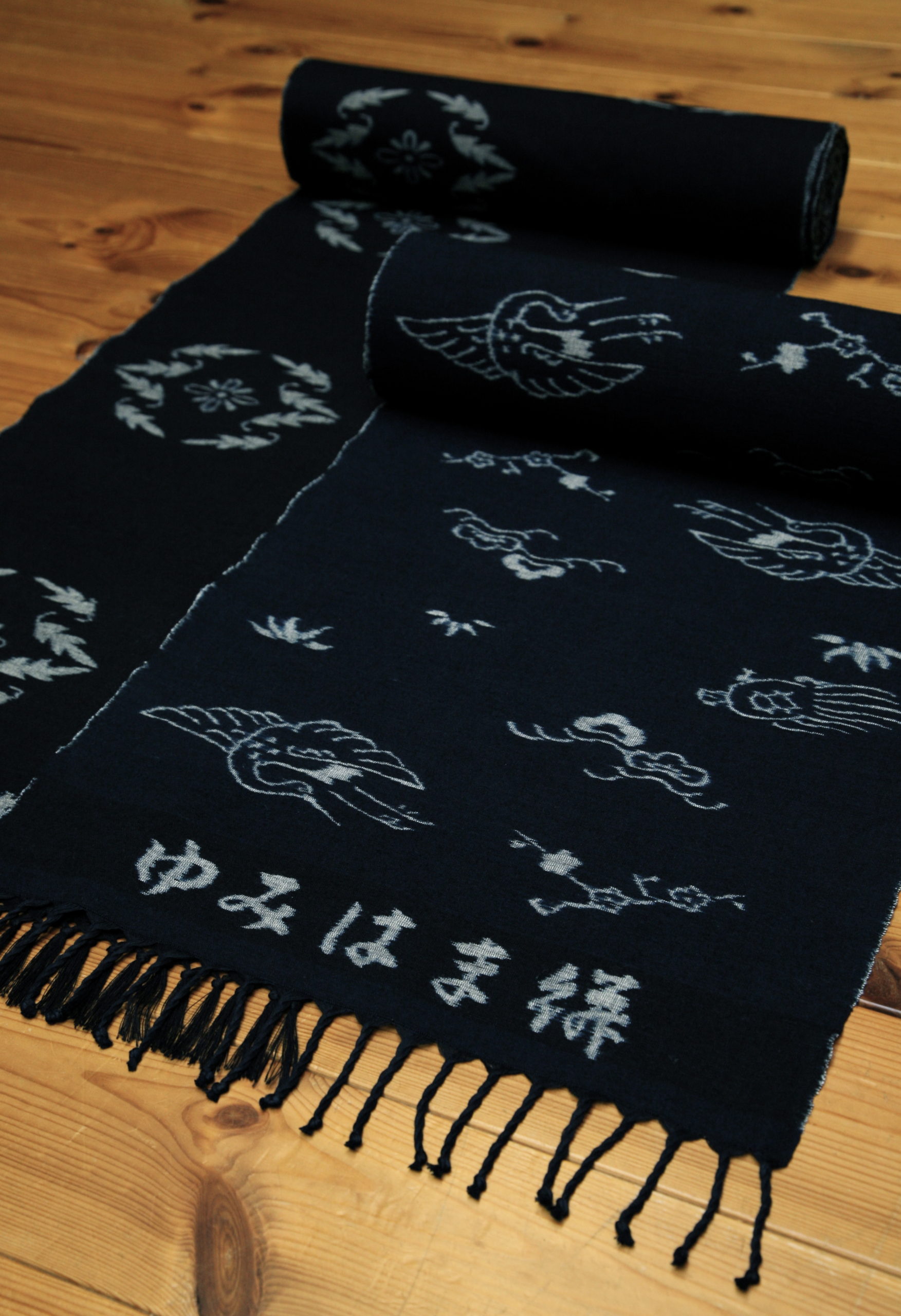 伯州綿で名高い弓ヶ浜地方では、古くから女性たちが心を込めて木綿の絣を織っていました。 工房では、地綿を育て、天然藍で染め、高機(たかはた)で織る、その伝統の仕事を継承しています。 鶴亀や松竹梅などの吉祥文様のほか、風景、動物、物語、時代背景、幾何学文様など今に伝わる限りない絵絣は、飾らぬ表情で人の想いと時代の流れを伝えます。 古い木綿絣に心動かされ、手が生む布の風合いに惹かれた織り人が、綿作りから、糸紡ぎ、藍染め、機織りを、手作業で仕事しています。| 所在地 | 鳥取県境港市竹内町899 |